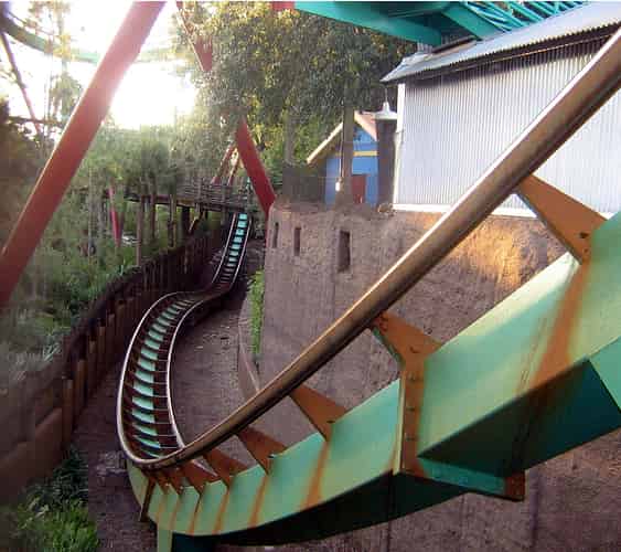 The cobra roll. The entrance to Congo River Rapids passes right through the middle.