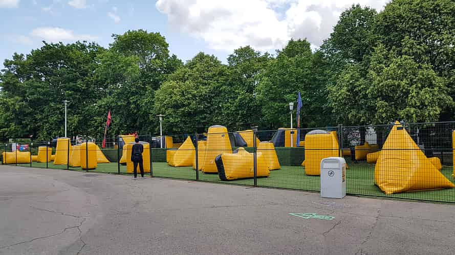 Temporary inflatable obstacle course.