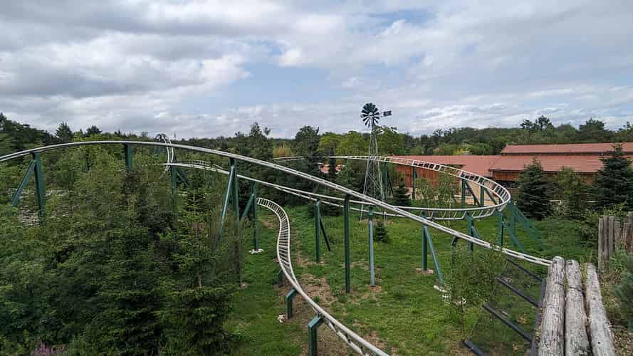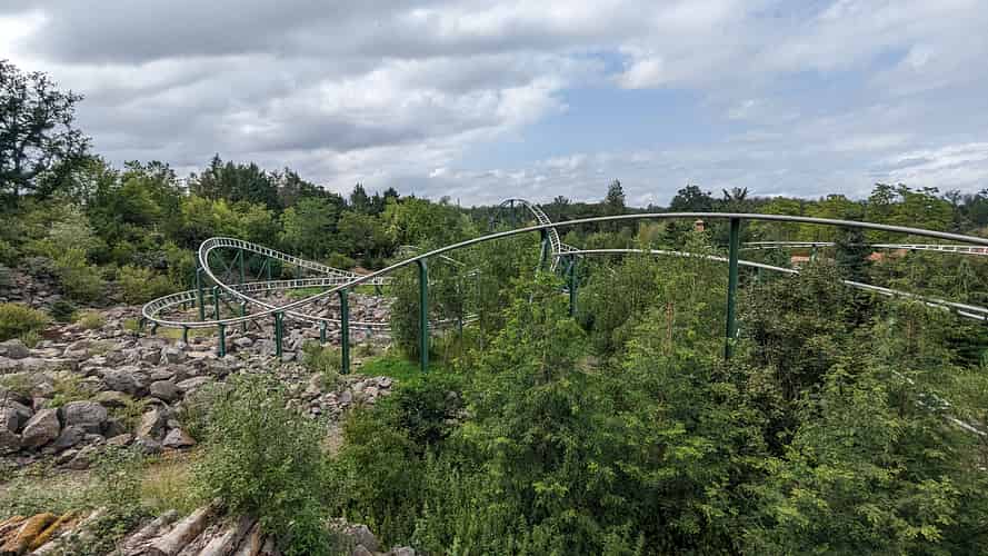 The constant criss crossing over 1km of track, through trees, boulders and tunnels make the layout a hard one to memorize.