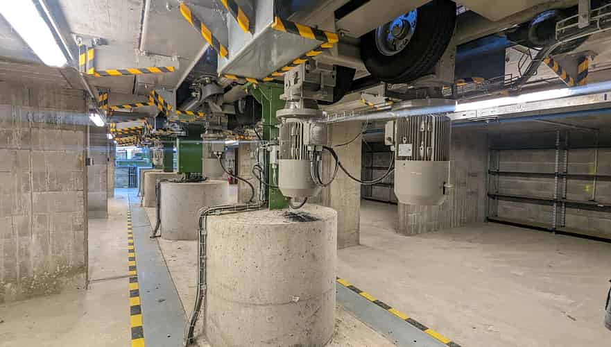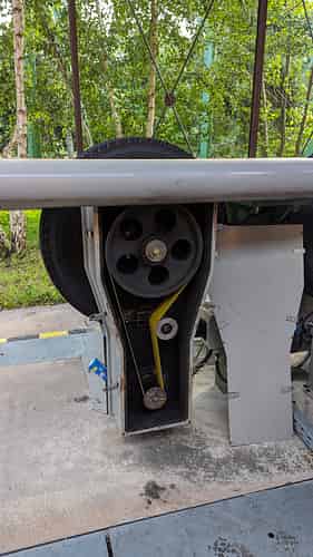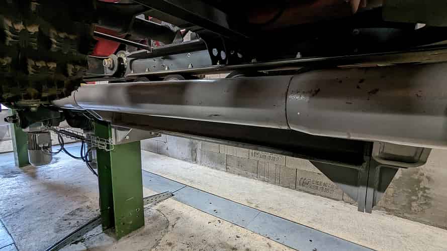 The storage track has a thinner section of rail that can be removed to allow for wheel inspections and changes.