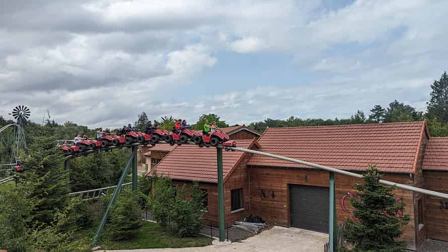 The ride uses kicker wheels driven by electric motors to launch the train.