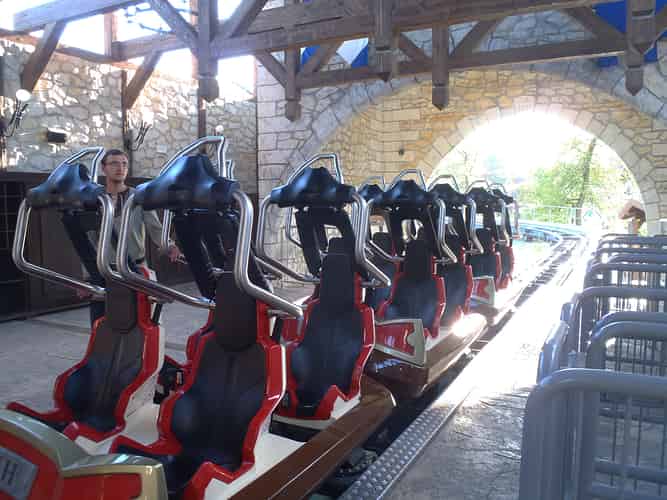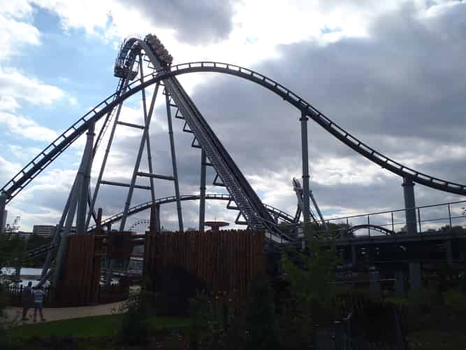 Perhaps the one drawback of the ride is the decision to use overhead restraints in a world where lap bars are fast becoming the norm on sit down loopers.
