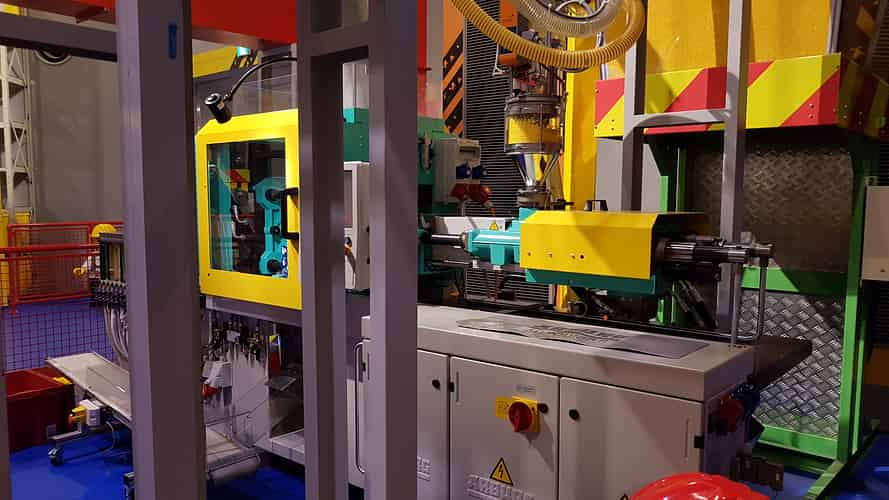 Pellets are fed into the moulding machine.