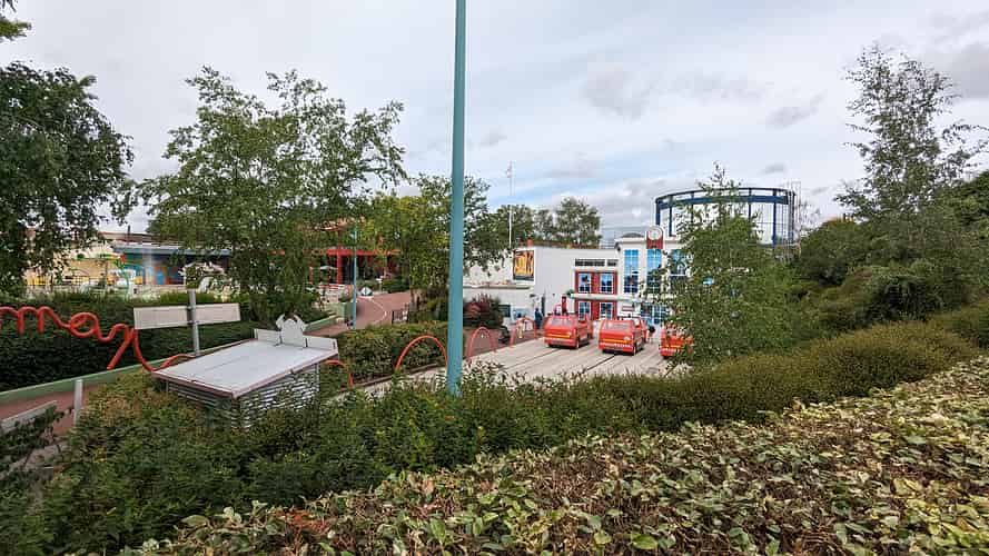A firehose spells out the name of the ride.