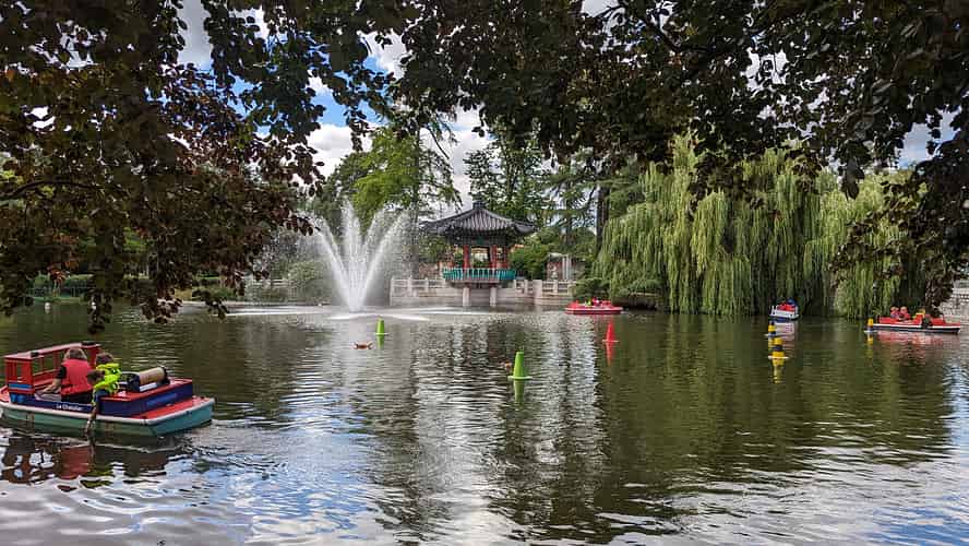 The pagoda by the lake reminds us of a similar boat ride at Tivoli gardens.