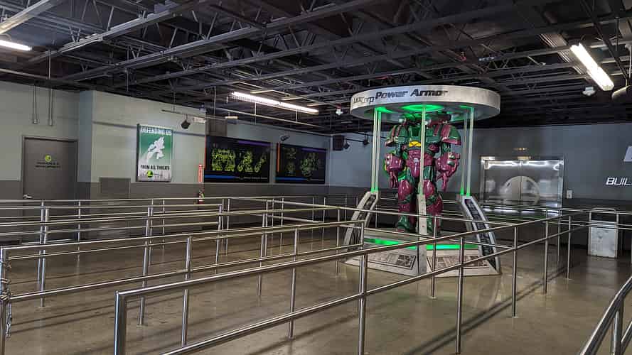 the queue is themed like a mini version of Lexcorp headquarters.