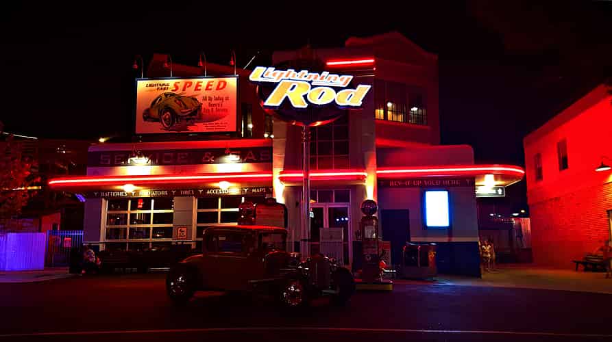 The ride is centred around hot rod racing. Supposedly, hot rods came about as a way for moonshiners to outrun authorities.