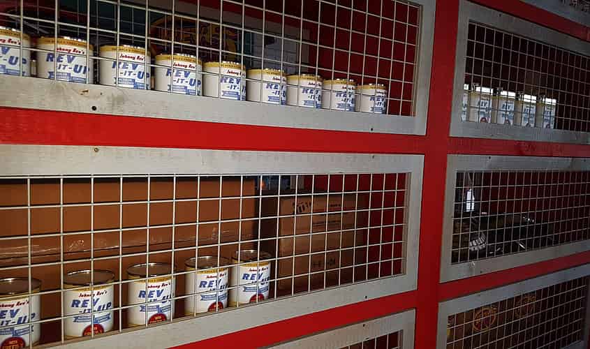 The fictional "Rev it Up" brand of oil is a recurrent theme throughout the queue.