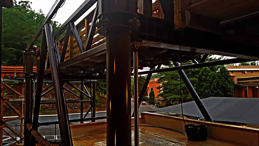 The ride is notoriously difficult to photograph, being hidden behind the ridge line in a valley, but riders can expect a ballistic layout of large drops, outward banked turns, twists, hills and more, all taken at a breathless pace.