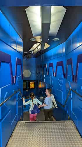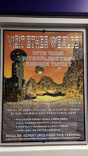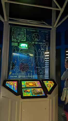 The queue has a retro space vibe.
