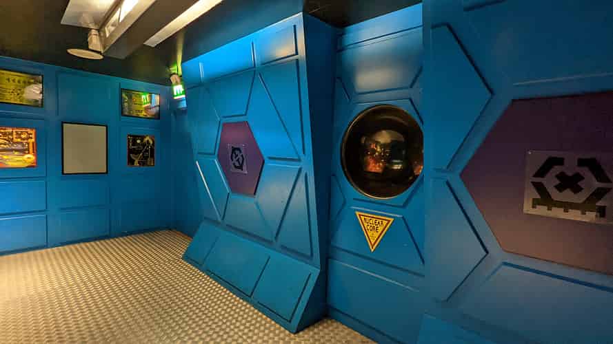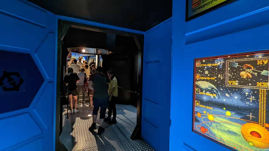 The queue is actually outdoors, so you are somewhat rushed through the corridors of the "space station".
