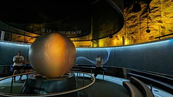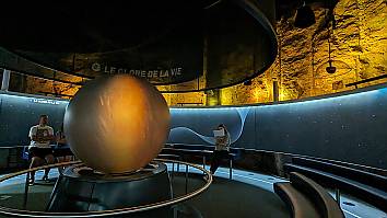 You can sit on a rotating sofa under a dome with imagery of the solar system.