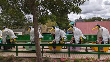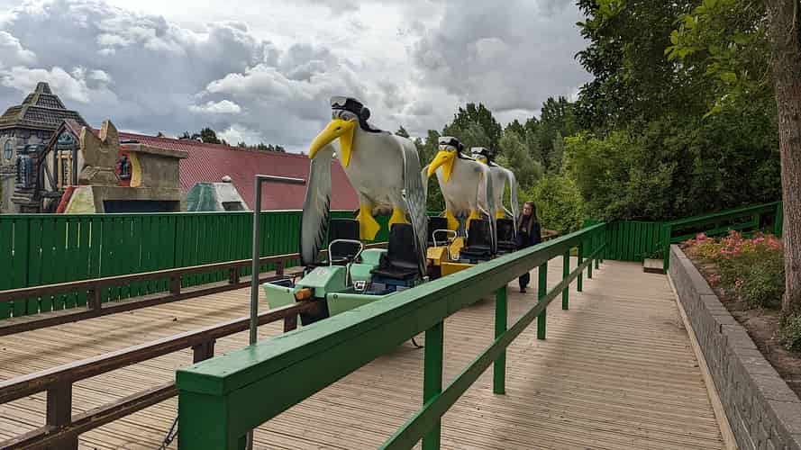 Mageklatterne is an elevated pedal monorail ride.