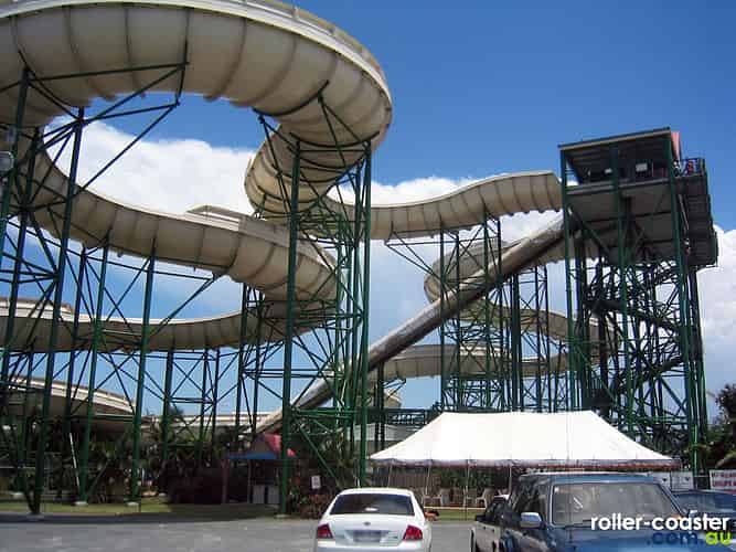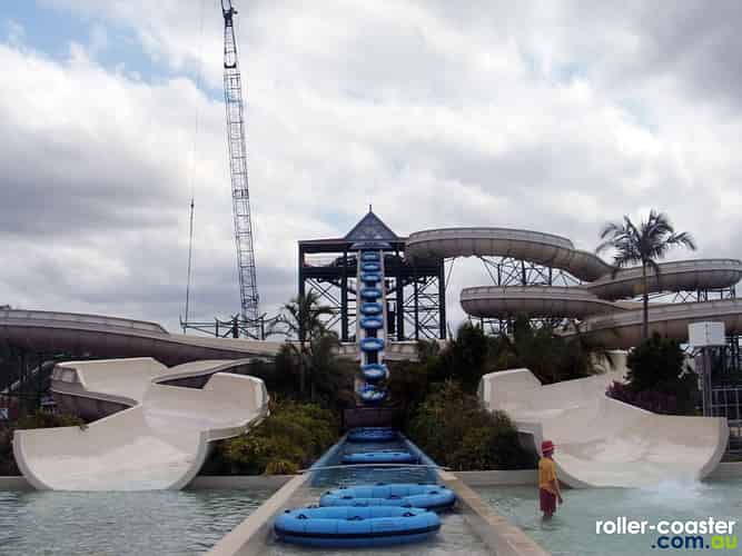This attraction uses a conveyer belt to take the rafts back to the top of the attraction