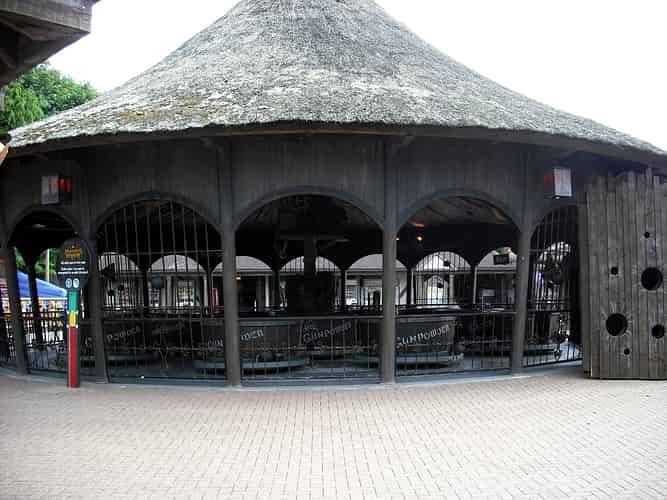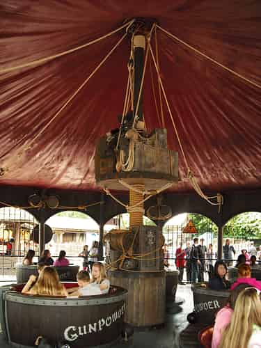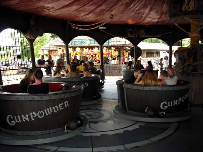 Previously a teacups ride in the Merrie England area of the park, the ride became themed to rum and gunpowder kegs with the change to Mutiny Bay.