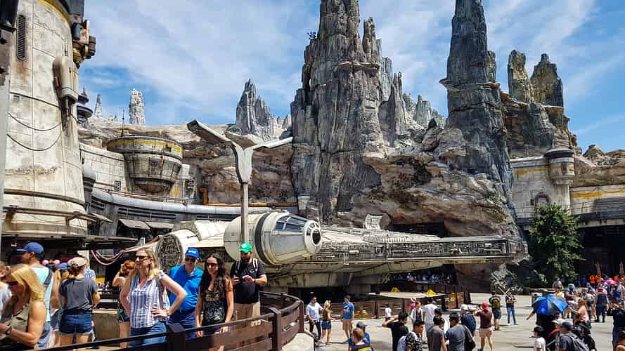 The full scale replica of the Millennium Falcon is THE focal point for visitors to Galaxy's Edge.