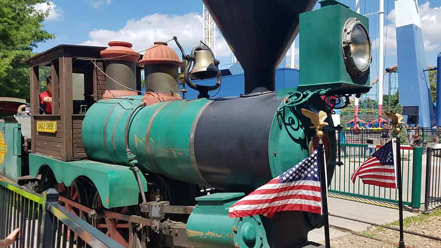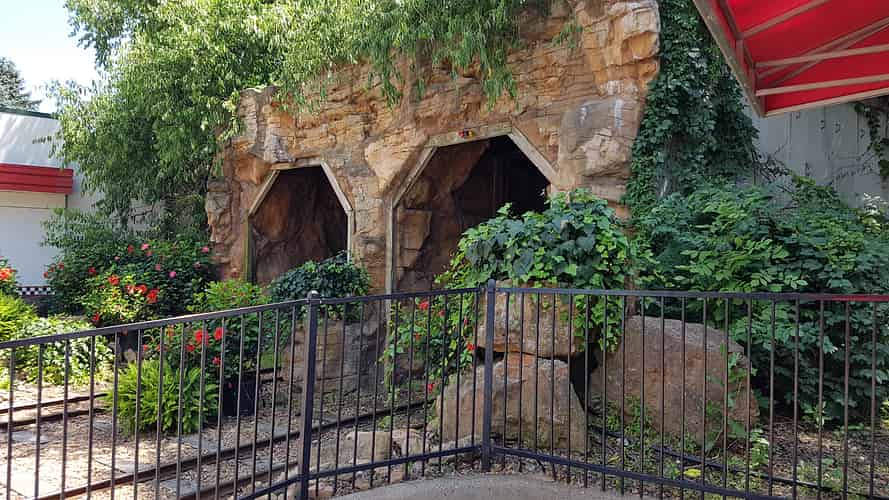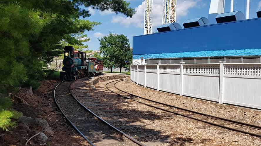 The tracks run parallel for a large section, with loops that pass around power tower and the show arena.
