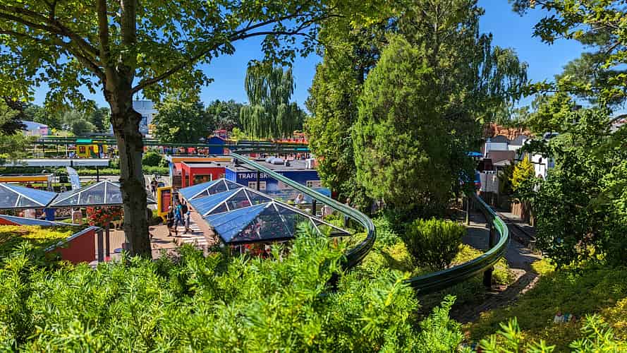 The monorail is a gentle ride passing over Duplo Town and parts of Miniland.