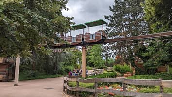 Small driverless trains shuttle guests on a short aerial tour of the back part of the park.