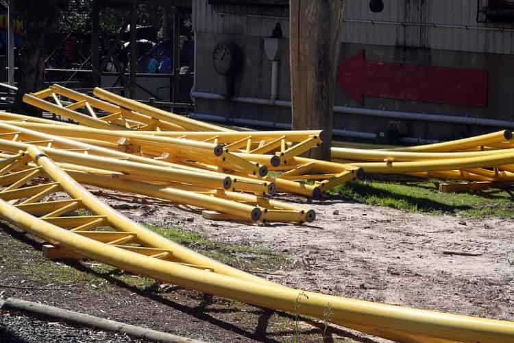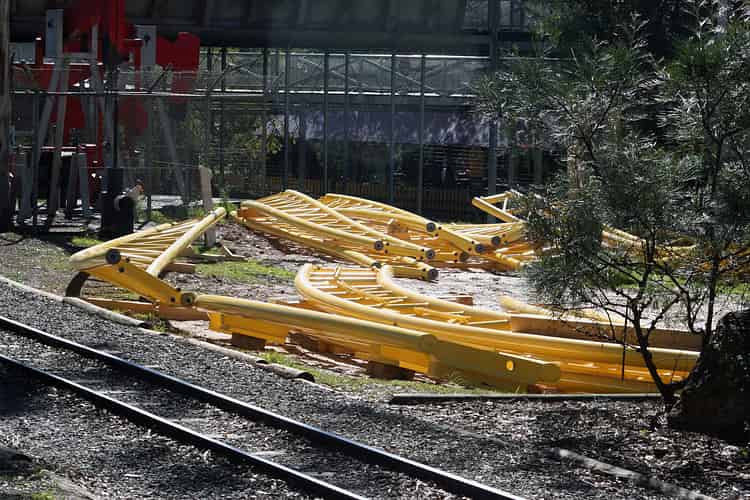 Some of the twisted track that'll make up heavily banked turns and hills across the course of the roller coaster.