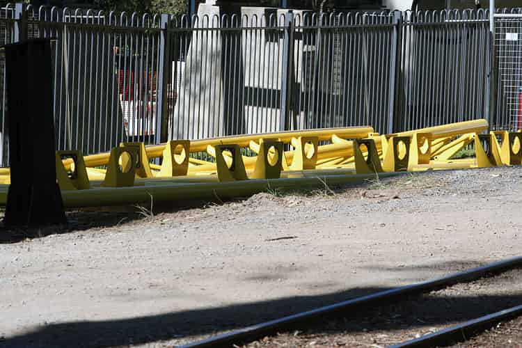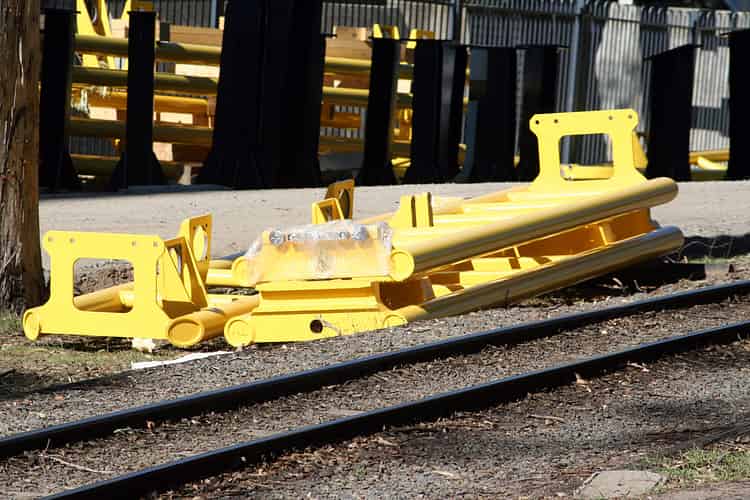 A look at the ends of some track showing how two pieces are bolted together.