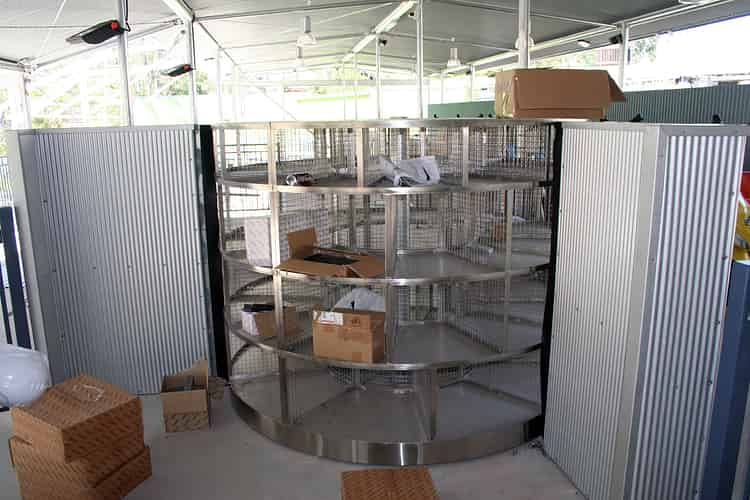 Loose items can be stored in the provided rack area (at the rider's risk). The rack will rotate to allow safer storage simultaneously for up to three trainloads of passengers.