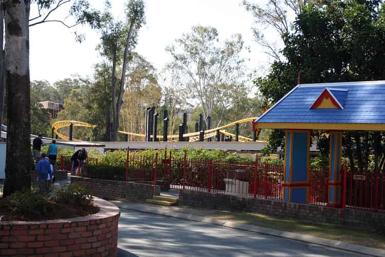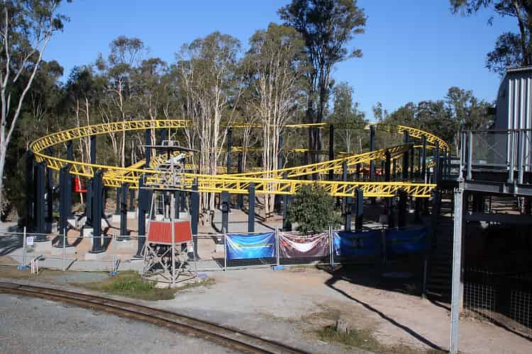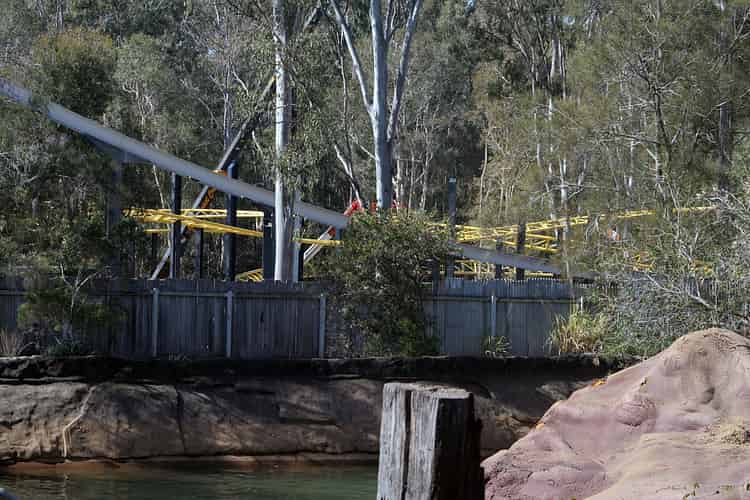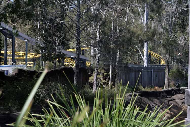 Seen from the Goldrush section of Dreamworld, this gives an idea of the coaster's impact in other areas of the park.