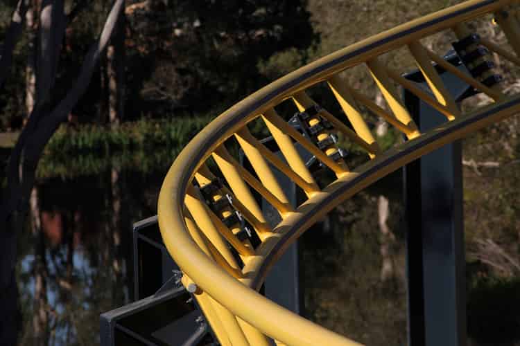 Each section of track is bolted to the next, which makes maintenance considerably easier than older roller coasters like Cyclone where the track is all welded together.