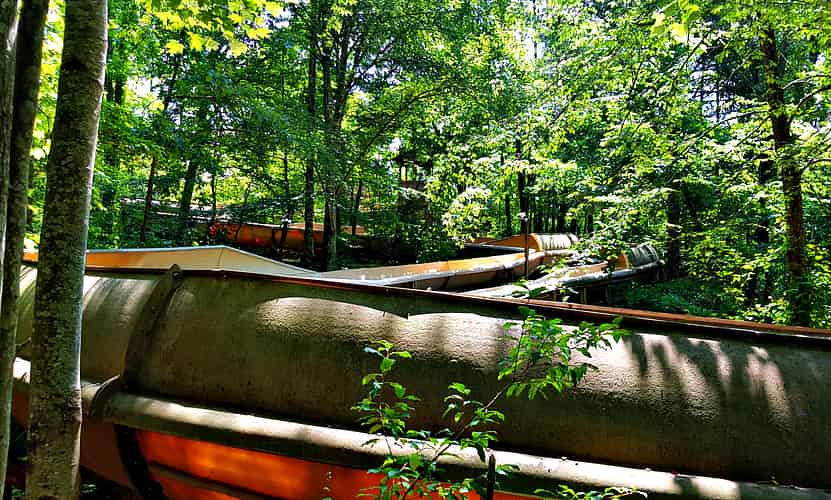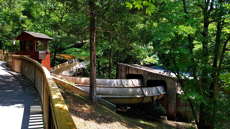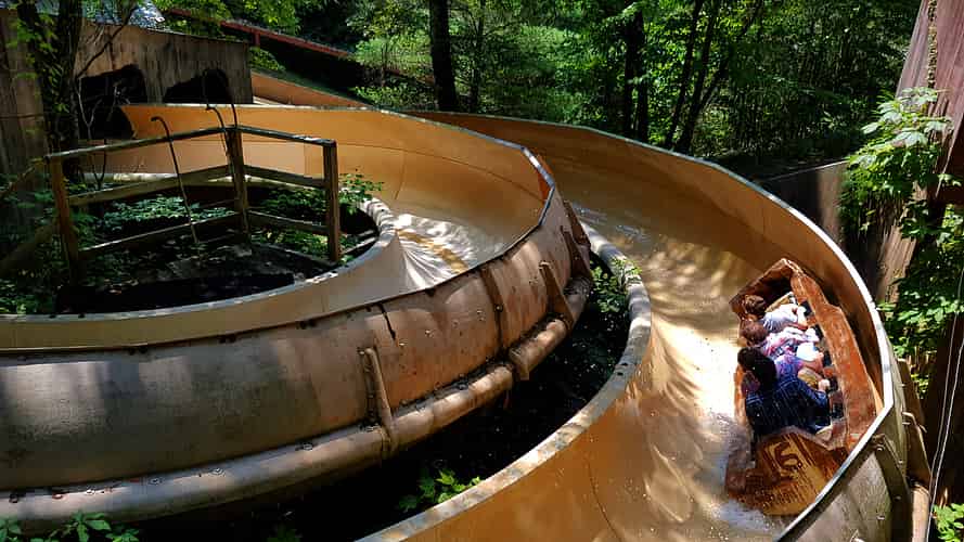 Mountain Sidewinder is a unique ride where guests ride in their street clothes in a foam rubber raft down a steep meandering chute