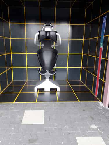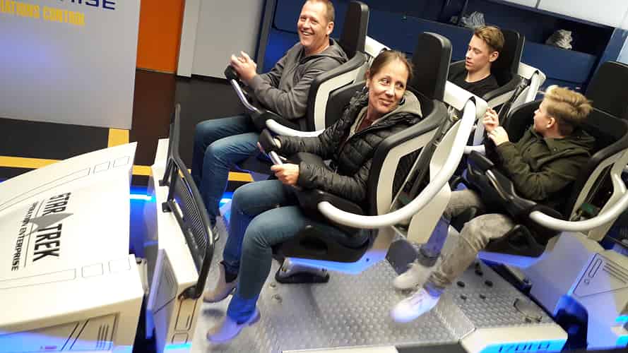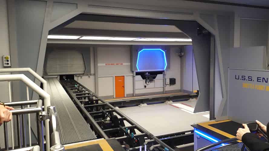 The ride is themed to a virtual training exercise on the holodeck.