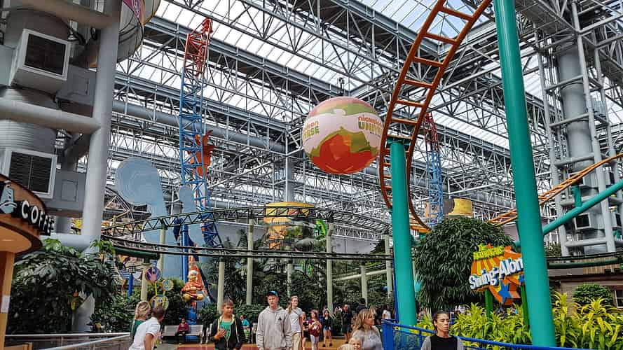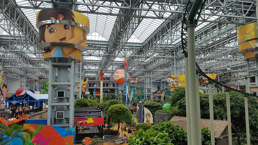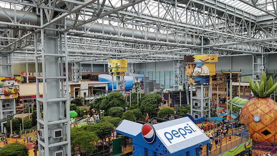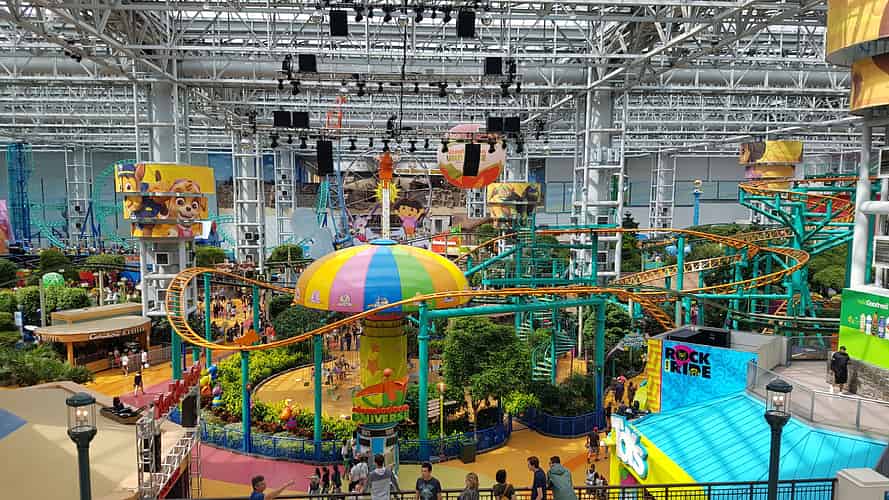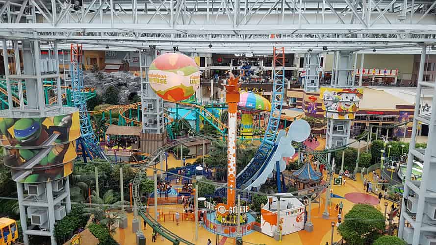 The entry sign for Nickelodeon Universe. The park is free to enter, with various ride ticket and wristband options available.