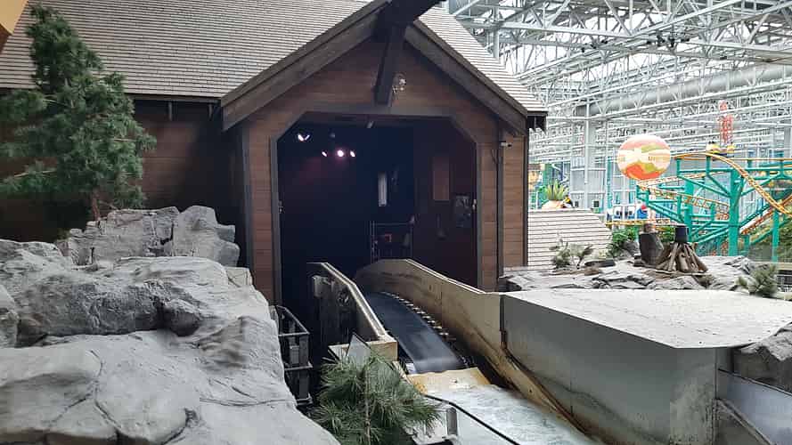 Orange Streak arriving into the mid course brakes before the 2nd lift. Fairly Odd Coaster in the background.