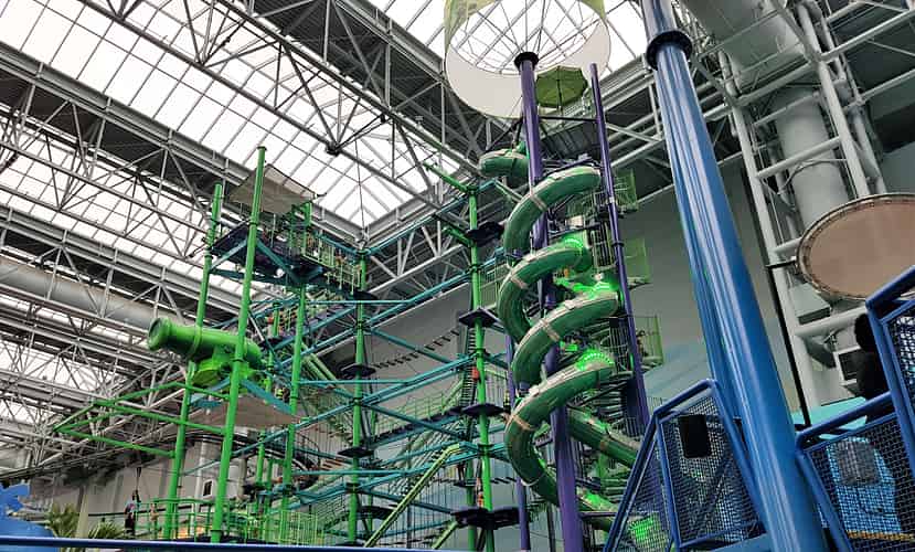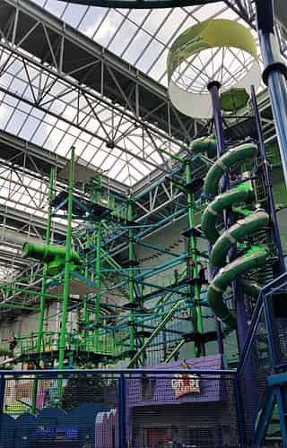The start platform for the zipline, plus the ropes course and slides.