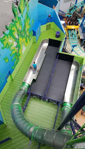 The slides are ridden on mats.
