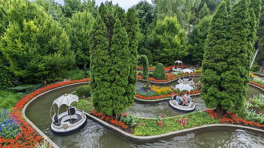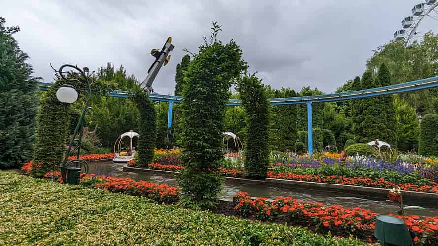 The gardens are so lush you can barely see the ride.