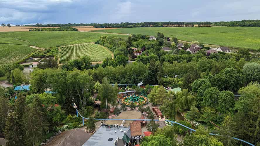 The park is located in the Champagne region of France, surrounded by Vineyards.