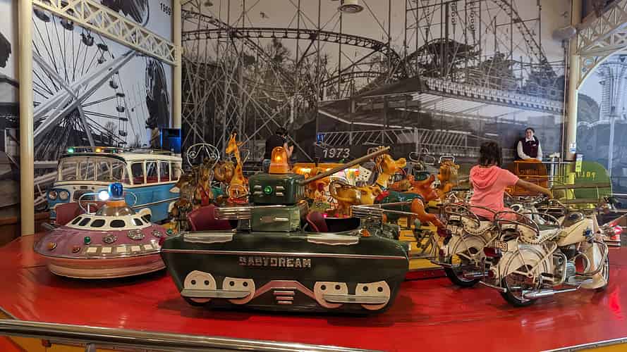 The pavillion contains a lot of old amusement ride memorabilia.