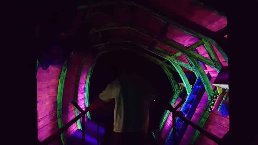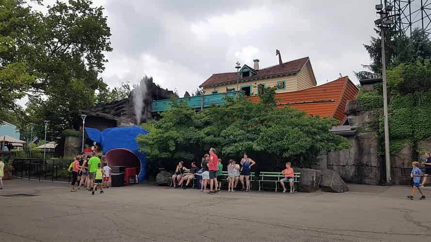 Noah's Ark is a classic walkthrough fun house. A whale that sprays a plume from its blowhole marks the entrance.