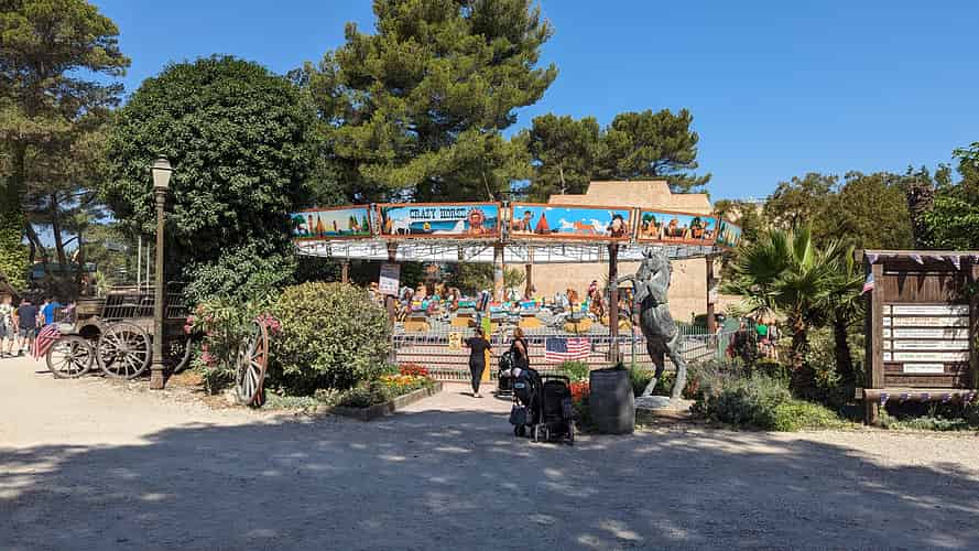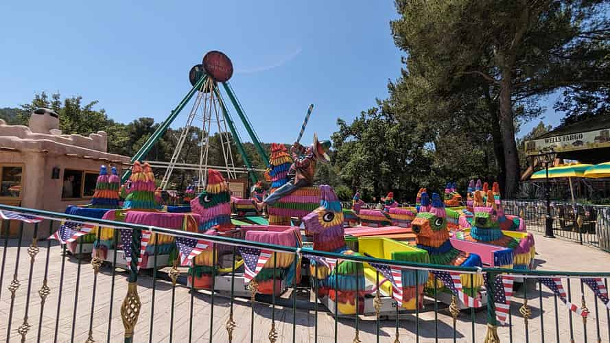 Little Wild Animals is the small ride on the left. It sits next to the Tornado chair swing and the jumping Texas Boots.