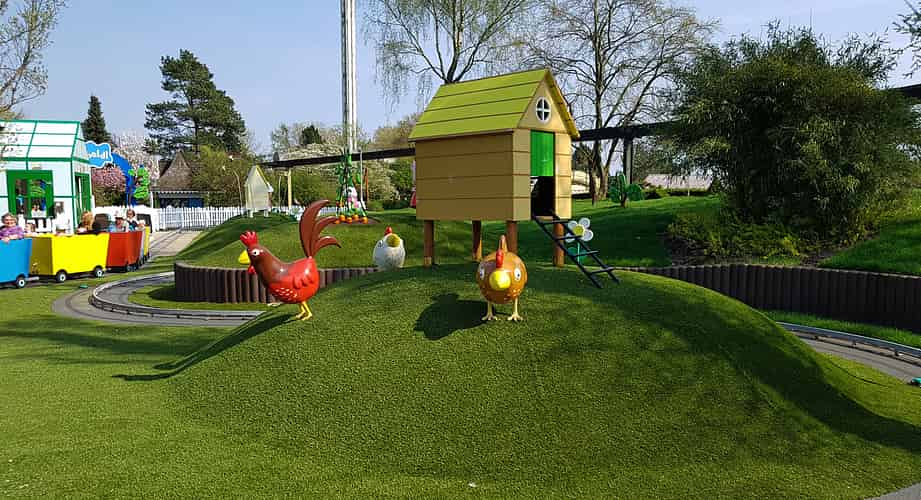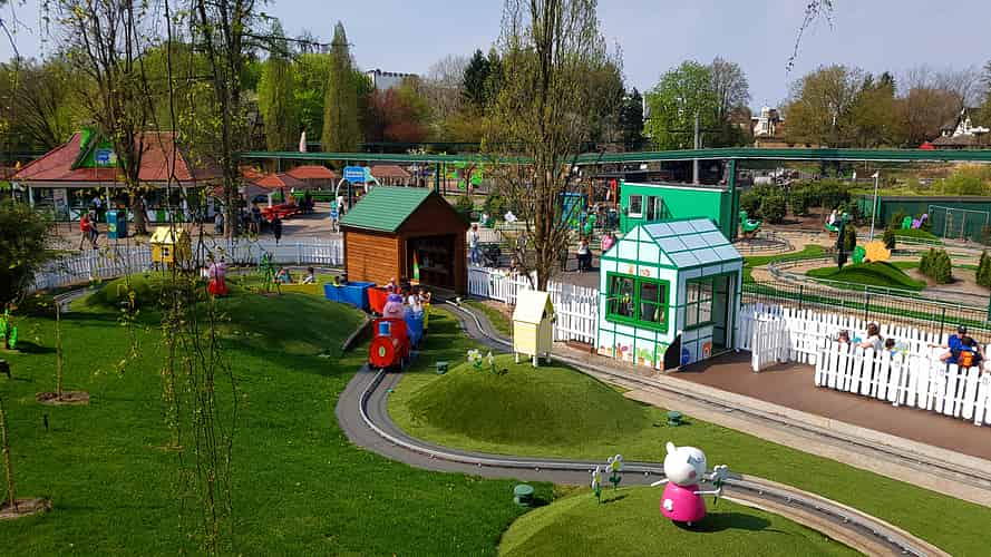Peppa Pig Land, featuring Peppas Bootsfahrt, Opa Pigs Zugfahrt, and Schorschs Dino-Abenteuer.