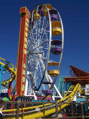 Looking back at the park from the end of the peir. Inkie's Scrambler can be spotted inside the helix of the Santa Monica West Coaster.