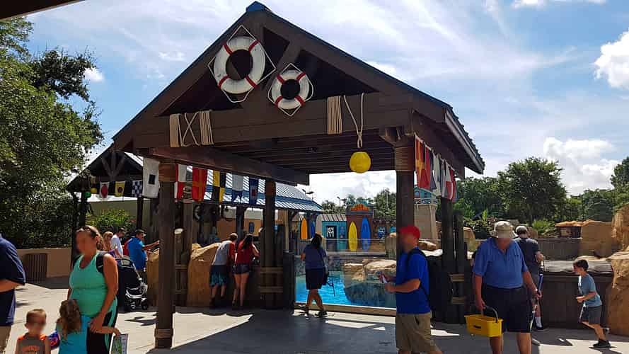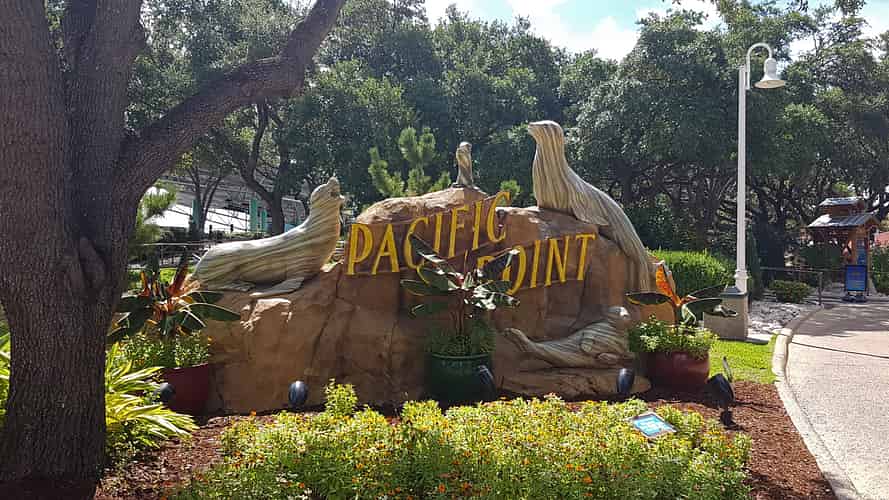 The area has a Pacific coastal town theme.
