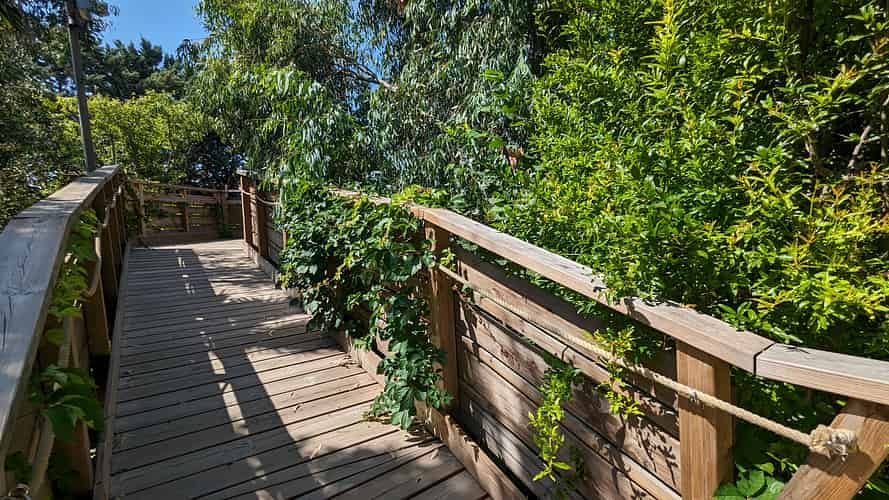 You can look down on the track from an elevated boardwalk.