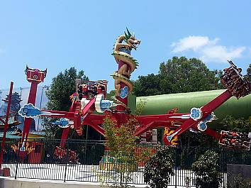 Pandamonium is the flagship attraction of the Kung Fu Panda Land of Awesomness. Guests ride in one of 6 Rickshaws that swing 360 degrees sideways, whilst revolving around a central hub.
