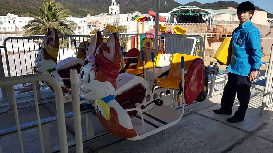 The cars are themed after Gatto, the park mascot.