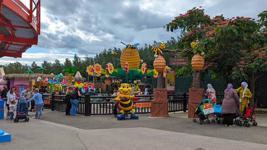 A few french parks have these mini flumes with freely circulating boats you just walk up to and put your kid on.