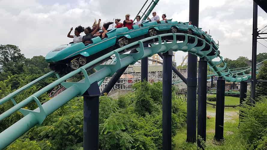 The first part is similar to Jack Rabbit, with a drop and turnaround down a valley, but with some cool interaction with Phantom's Revenge.