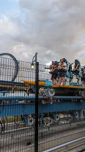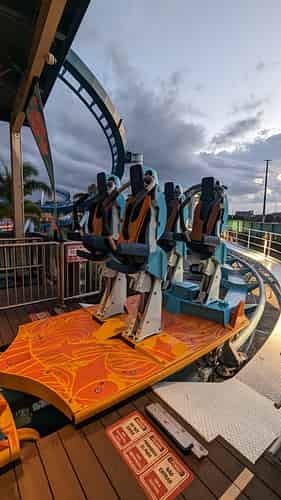 Previously, stand up coasters had a reputation for being uncomfortable. The surf coaster addresses this with a harness design that can move up and down during the ride, dampening any jolts.