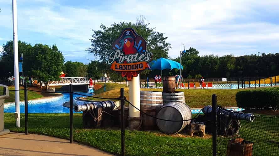 Theming at the entrance of Pirates Landing.