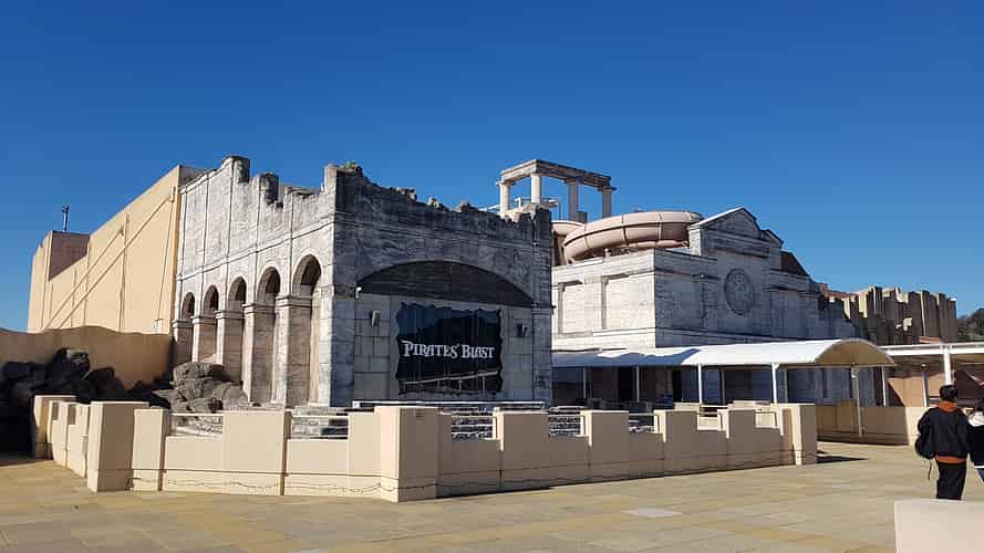 Pirates Blast is an indoor / outdoor coaster, built in the remains of an old dark ride.